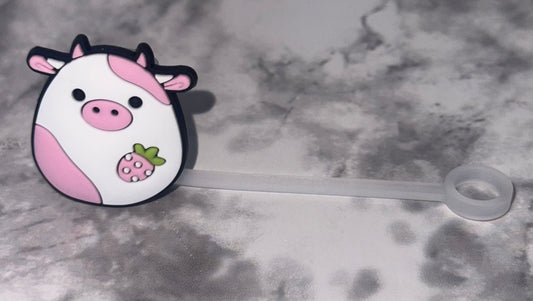 Pink and White Pig Straw Topper