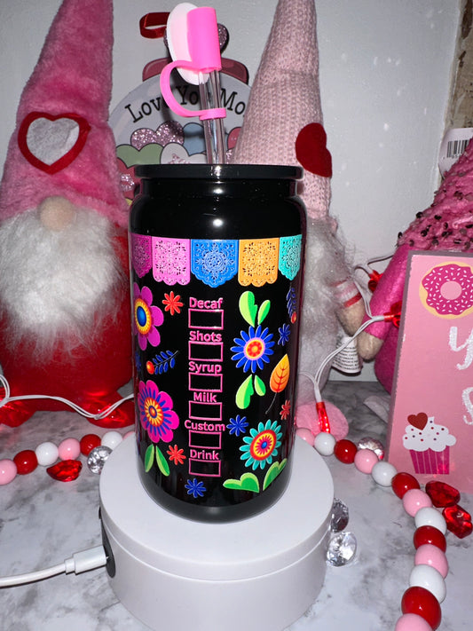 Cafecito y Chisme Black Glass Tumbler
