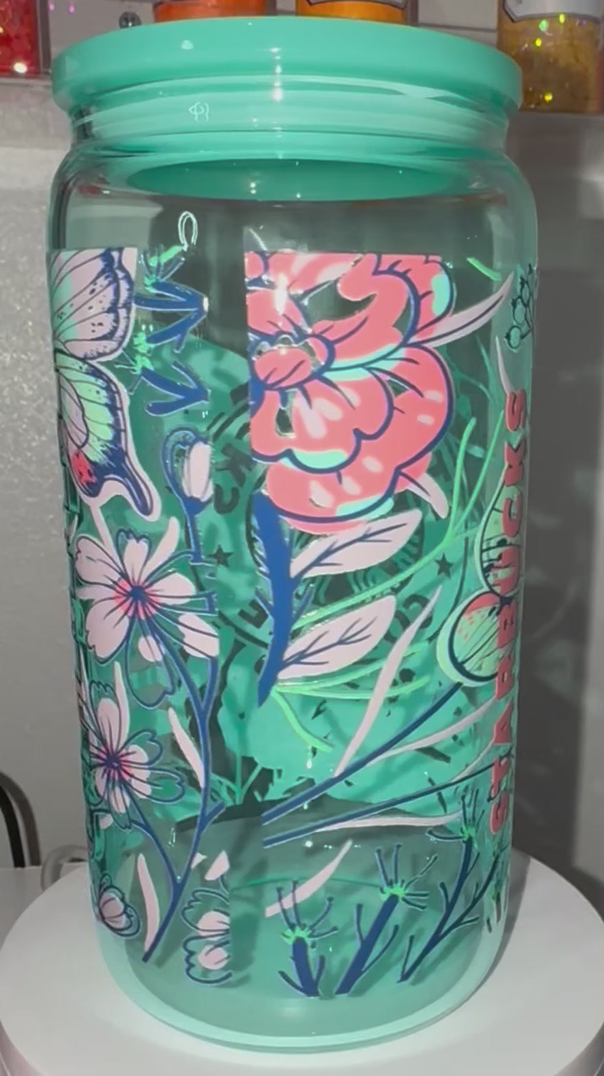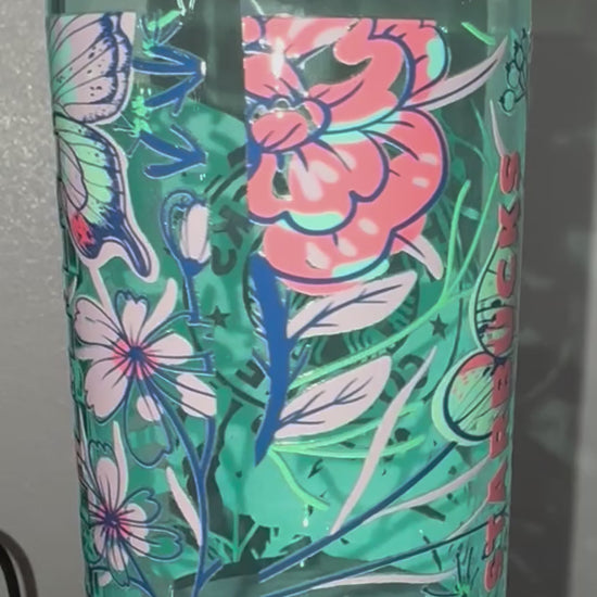 20oz glass tumbler with lid and straw.